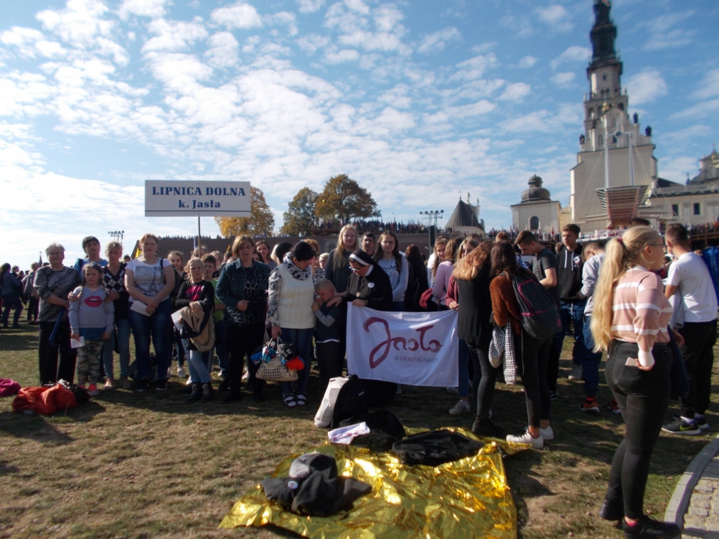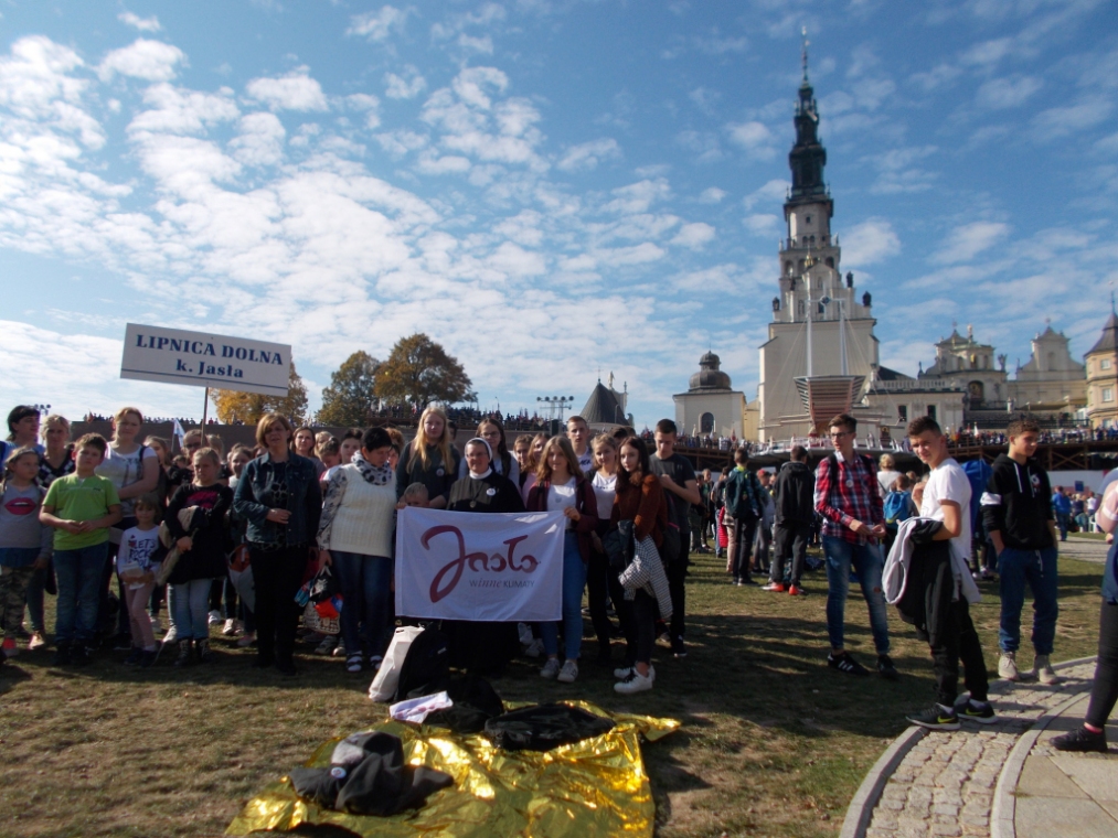 11 października 2018 r. na Jasnej Górze odbyła się XVIII Pielgrzymka „Rodziny Szkół im. Jana Pawła II”. W tym roku do Częstochowy wybraliśmy się z przedstawicielami Zespołu Szkół Ekonomicznych w Jaśle z siostrą Kariną na czele. W uroczystej Mszy Św. wzięło udział 14 tysięcy osób. Wspólna modlitwa, śpiew, baloniki z pozdrowieniami i prośbami do św. Jana Pawła II oraz piękna, słoneczna pogoda spowodowały, że czas spędzony w Częstochowie był dla wszystkich niezwykłym, duchowym przeżyciem. Kolejny punkt naszej wycieczki to Centrum św. Jana Pawła II. W tym miejscu poczuliśmy szczególną więź z naszym kochanym Patronem. Wielkie wrażenie na wszystkich wywarła, skrwawiona podczas zamachu na Jana Pawła II, sutanna oraz płyta nagrobna przywieziona z Watykanu. Po zwiedzeniu i modlitwie w Sanktuarium Bożego Miłosierdzia w Łagiewnikach udaliśmy się w drogę powrotną. Dzięki siostrze Karinie czas spędzony w autokarze upłynął wszystkim bardzo szybko i wesoło, a wspomnienia i wspólne przeżycia pozostaną w naszej pamięci na całe życie.