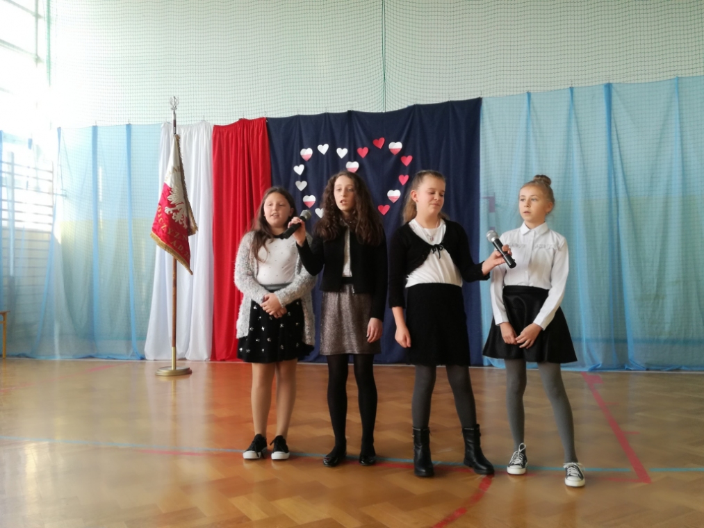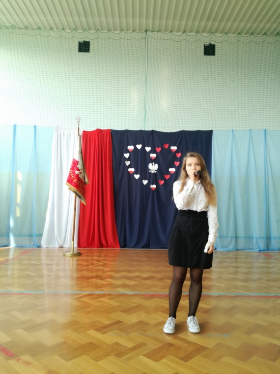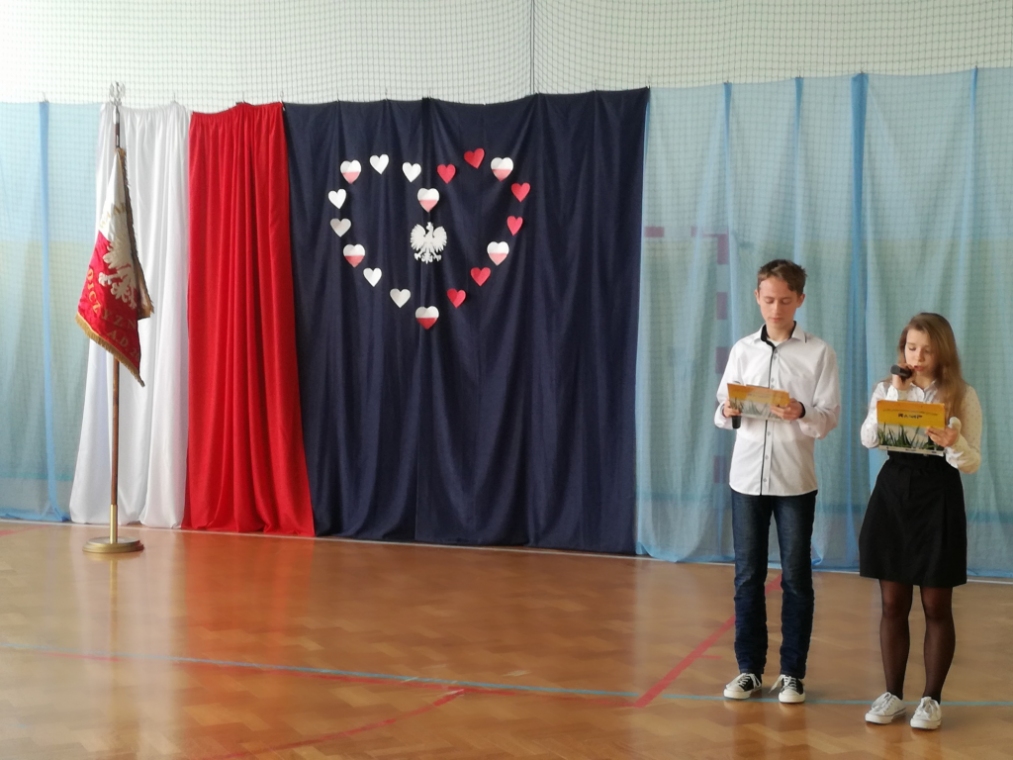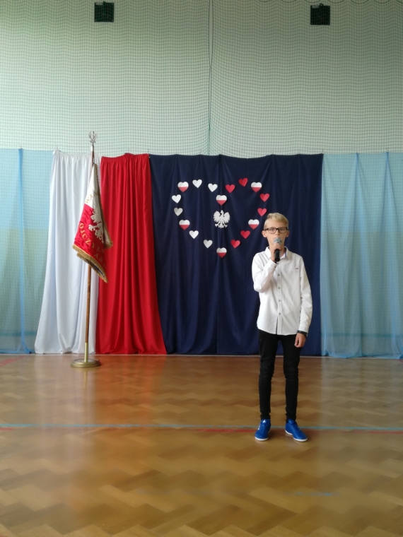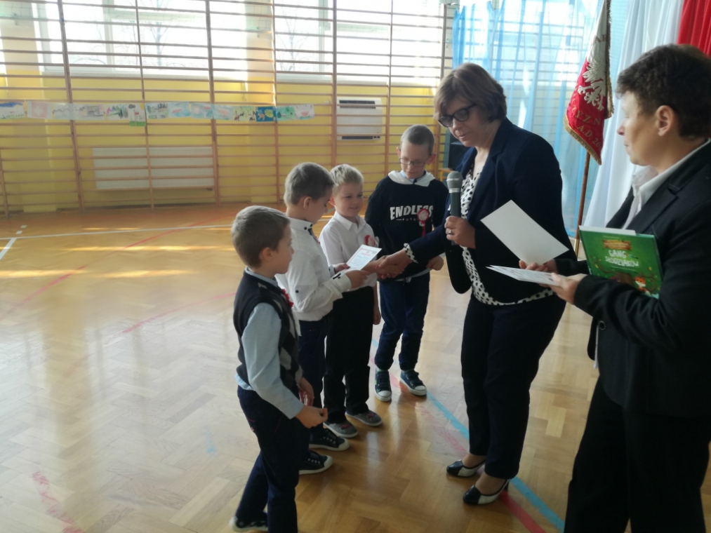 Miniony piątek był w naszej szkole dniem szczególnym. Odświętnie ubrani uczniowie, szkoła z dumnie powiewającą flagą, wiersze patriotyczne, informacje o wybitnych Polakach- patriotach na szkolnych gazetkach. To wszystko, by uczcić 100. rocznicę odzyskania niepodległości przez naszą Ojczyznę. Uroczystą akademię poprzedziła projekcja filmu, który w ciekawy sposób przybliżył najważniejsze wydarzenia historyczne, powstania, walki, a szczególnie postać marszałka Józefa Piłsudskiego, który poprowadził Polskę do zwycięstwa. Kolejnym punktem uroczystości był szkolny przegląd utworów patriotycznych w wykonaniu uczniów z poszczególnych klas. Na scenie pojawili się nawet najmłodsi, którzy słowami wiersza W. Bełzy: „Kto Ty jesteś? Polak mały” wprowadzili zgromadzonych w podniosły nastrój. Po pięknych prezentacjach słowno- muzycznych wszyscy włączyli się w śpiewanie pieśni patriotycznych. „Rozkwitały pąki białych róż”, „Przybyli ułani pod okienko”, „Pierwsza kadrowa” czy „Wojenko, wojenko” to piękne piosenki żołnierskie, które miło było usłyszeć w tak entuzjastycznym wykonaniu młodych Polaków- patriotów. Następnie ogłoszono wyniki konkursu plastycznego dla uczniów klas I-III "Moja Ojczyzna", konkursu wiedzy o symbolach narodowych dla klas IV-VI oraz konkursu historycznego na temat odzyskania niepodległości dla klas VII, VIII i III gimnazjum. Zwycięzcom i najmłodszym uczestnikom wręczono nagrody i dyplomy. O godzinie 11.11 we wszystkich szkołach w Polsce , również i naszej, został odśpiewany hymn państwowy. Celem akcji było jednoczenie młodzieży w duchu historii Polski. . Dzień ten dla wielu był ważną lekcją patriotyzmu i historii. Uczestnicząc corocznie w obchodach Święta Niepodległości dajemy wyraz pamięci o tych wszystkich, dzięki którym żyjemy dzisiaj w wolnej Polsce.