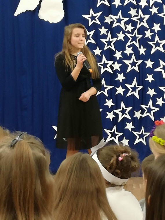 2. Wiktoria Rachowicz z klasy III gimnazjum – piosenka „Przekażcie sobie znak pokoju”.