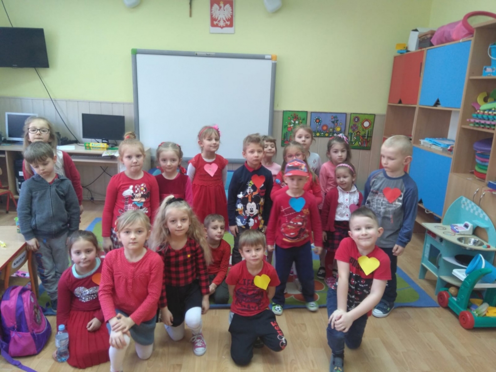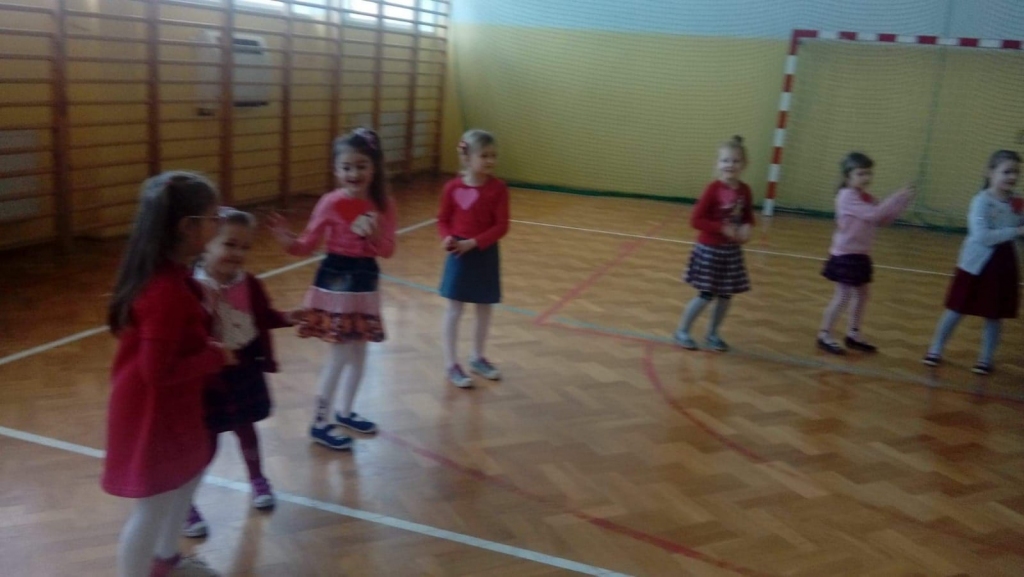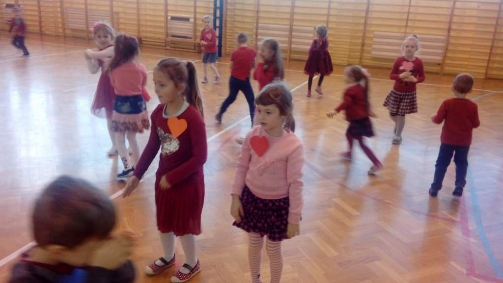 Dnia 7 lutego w przedszkolu odbył się bal walentynkowy. Wszystkie przedszkolaki przyszły tego dnia ubrane na czerwono. Było dużo zabawy, tańca i śmiechu. Na koniec do przedszkolaków dotarła poczta walentynkowa