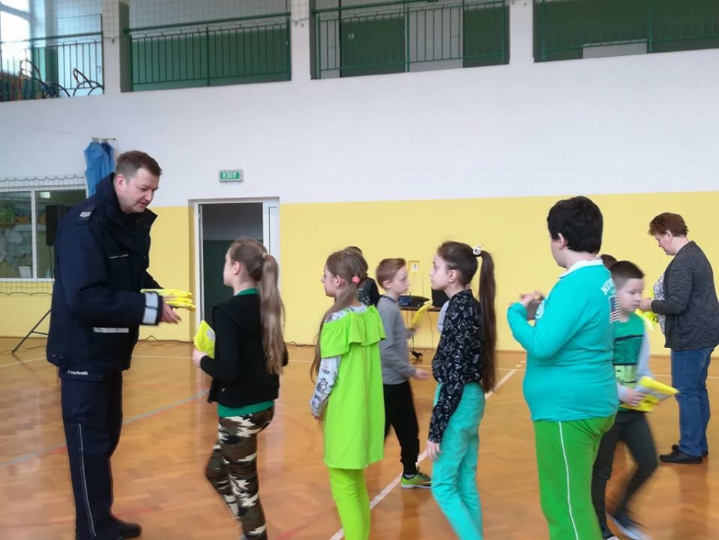 Celem projektu jest poprawa bezpieczeństwa uczestników ruchu drogowego , w szczególności dzieci i młodzieży. 22.03.2019 nasza szkołę odwiedził sierżant sztabowy Andrzej Skałba z Posterunku Policji w Kołaczycach. Przypomniał uczniom zasady bezpiecznego poruszania się po drodze, zwrócił uwagę, że podstawowym elementem ubioru dziecka na drodze powinny być elementy odblaskowe .Wszyscy uczniowie otrzymali kamizelki odblaskowe .