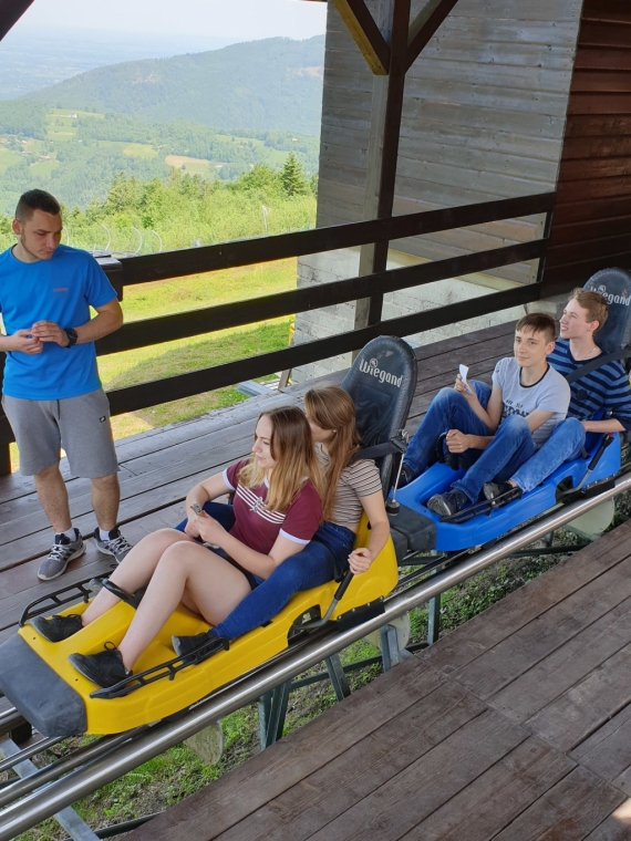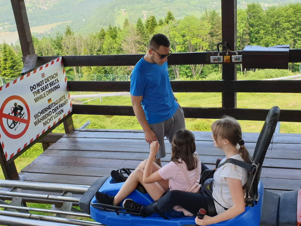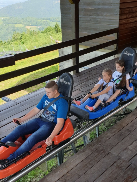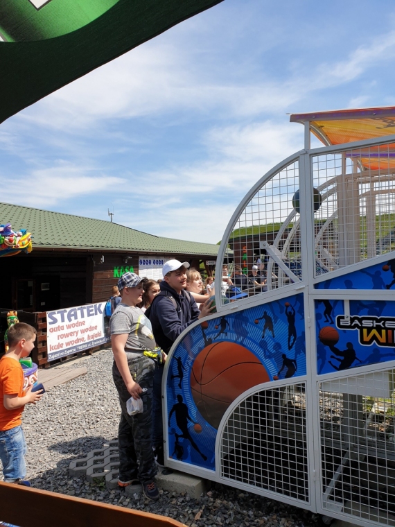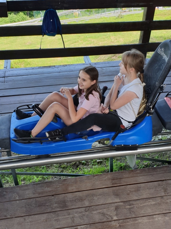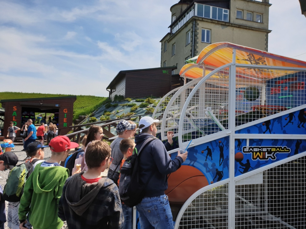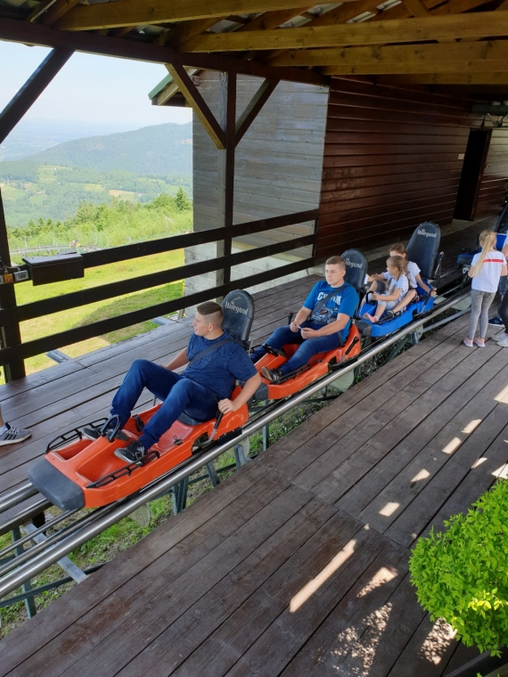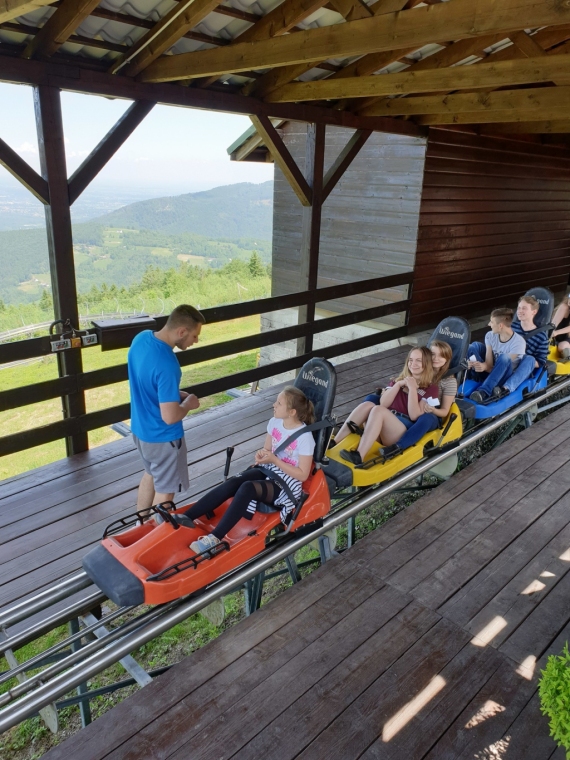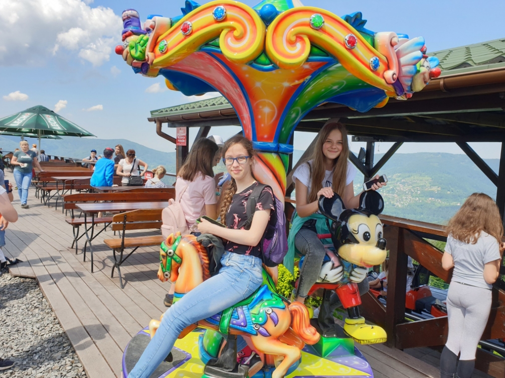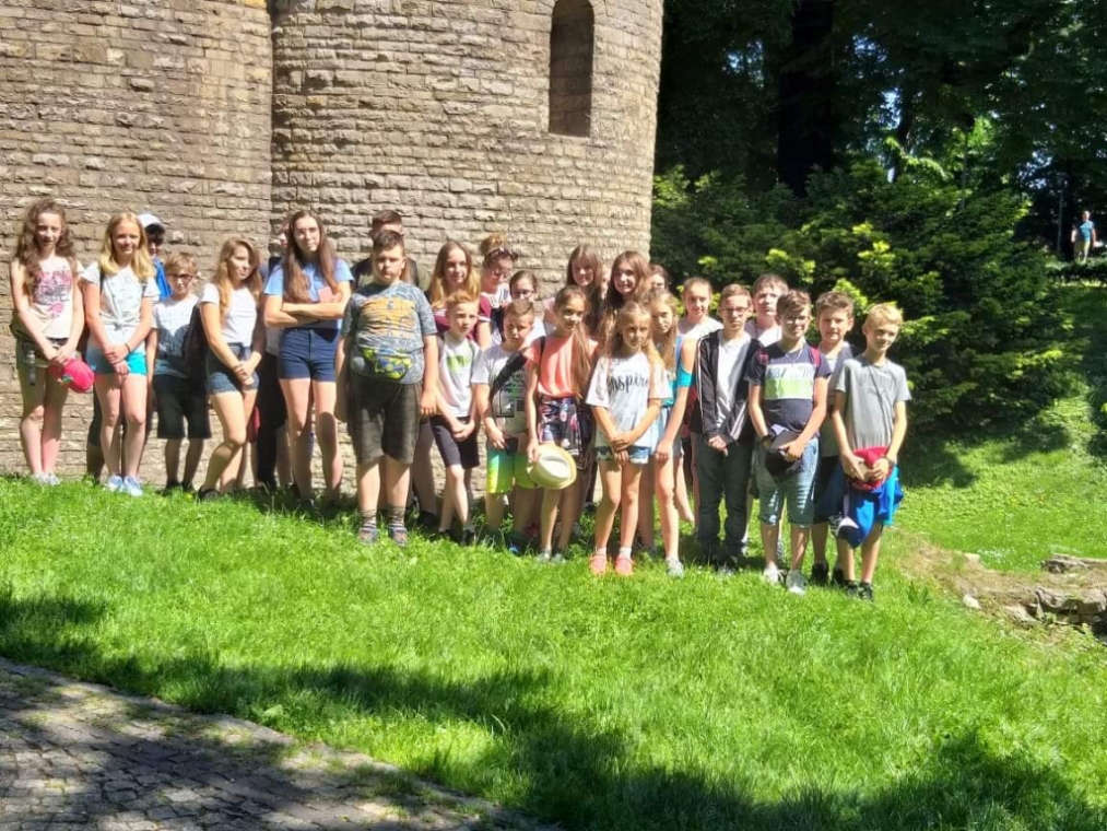 W dniach 4 - 6 czerwca przebywaliśmy w Beskidzie Śląskim i Żywieckim. Podziwialiśmy rozległą panoramę tej okolicy ze szczytu Góry Żar. W Mikro Centrum Nauki „Naukotechnika” oglądaliśmy efektowne doświadczenia z ciekłym azotem oraz poznawaliśmy właściwości skał i minerałów. Widzieliśmy w Wiśle czekoladową figurę Adama Małysza, a w Cieszynie słynną rotundę. Zachwycaliśmy się pomieszczeniami zamku w Pszczynie. Odwiedziliśmy Muzeum – Dom Rodzinny Jana Pawła II w Wadowicach. Bardzo smakowały nam lody w pięknym otoczeniu roślin w Ogrodach Kapias w Goczałkowicach. Kulminacyjnym punktem wycieczki był pobyt w Zatorlandzie, gdzie jest moc atrakcji – ruchome dinozaury, olbrzymie owady, postacie mitologiczne i oczywiście lunapark, z którego do woli korzystaliśmy