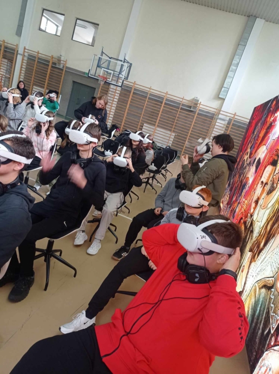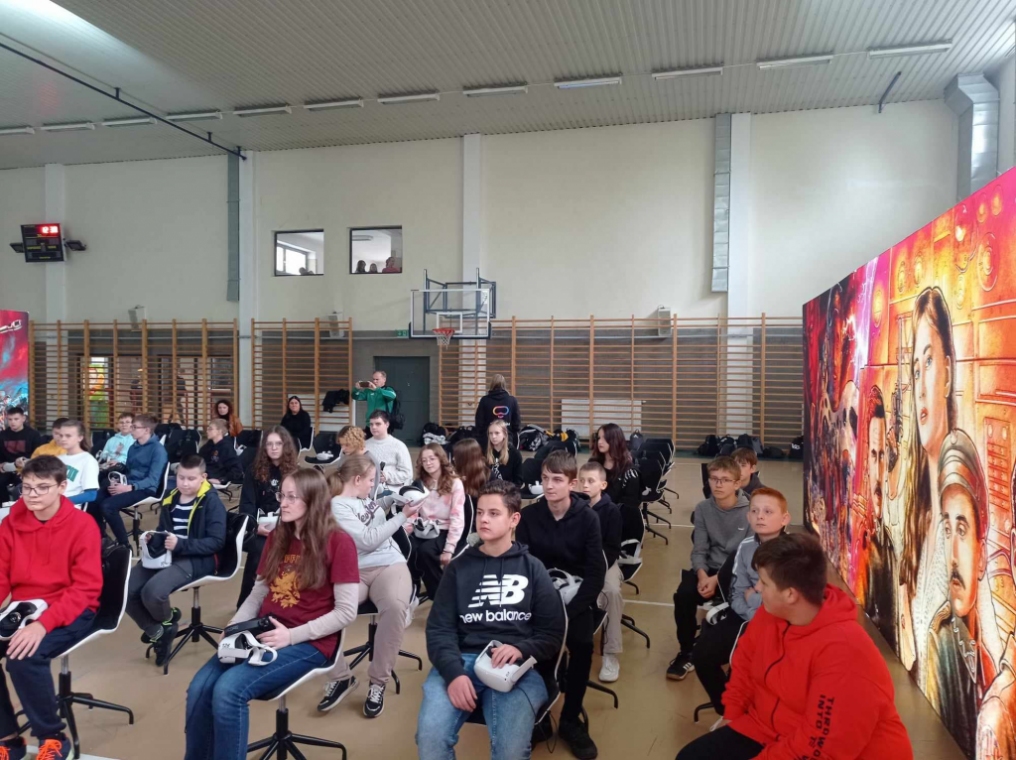 ”. Projekcja dostarczyła wszystkim niesamowitych wrażeń. Uczniowie mogli stać się jednym z bohaterów ważnych dla losów Polski wydarzeń historycznych. Uczestnicy udali się w podróż w czasie i razem z bohaterami przenieśli się na ulice wojennej Warszawy, by uczestniczyć w powstaniu warszawskim oraz wprost na pole bitwy, by w okopach przeżyć chwile grozy, ale i wielkiego poświęcenia i bohaterstwa. Możliwość dosłownego wejścia w obraz zapewniły najnowocześniejsze technologie wirtualnej rzeczywistości VR, a dzięki nim uczniowie odbyli niezapomnianą podróż do przeszłości, która na pewno pogłębi w nich szacunek i wdzięczność dla wszystkich, którzy kształtowali historię Polski.![]()