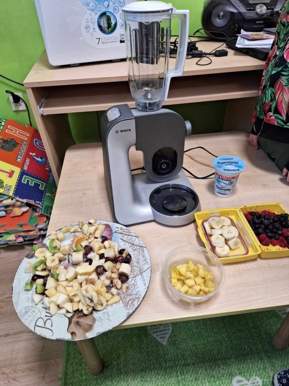 W zeszłym tygodniu nasi uczniwie realizowali temat o zdrowym odżywianiu. Przyłączyliśmy się też do akcji "Zdrowe Śniadanie" dzieci samodzielnie przygotowały kanapki pełne warzyw oraz owocowe szaszłyki i koktajle. Było pysznie! Zajęcia mogły się odbyć dzięki sprzętowi zakupionemu w ramach programu "Laboratoria Przyszłości "