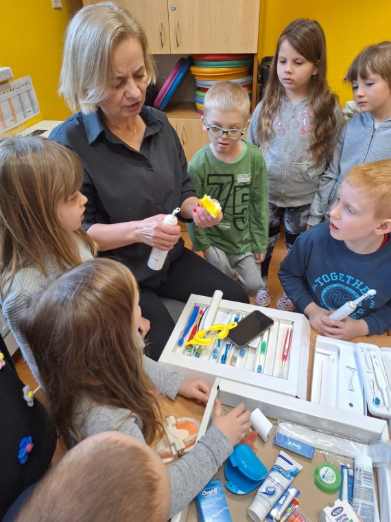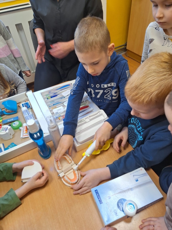 21 lutego dzieci z przedszkola i klas młodszych uczestniczyły w spotkaniu z Panią Danutą Jachym, która w ciekawy sposób opowiadała zebranym na czym polegają działania związane z higieną jamy ustnej. W czasie prezentacji dzieci poznały zasady i procedury obowiązujące podczas wykonywania zabiegów higieny jamy ustnej, a także poruszona została tematyka zapobiegania próchnicy.