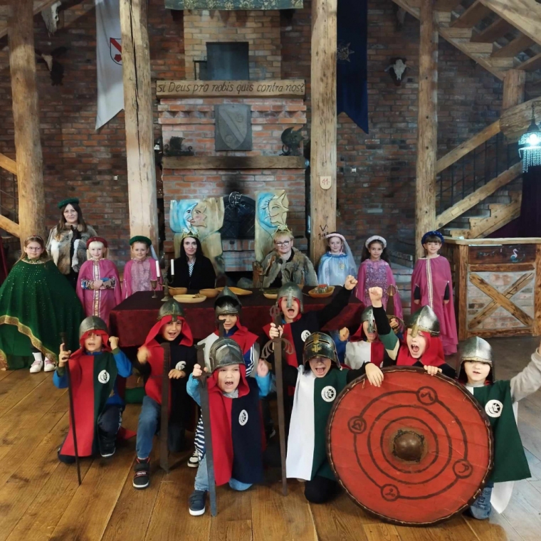 26 września uczniowie z kl. I - IV odwiedzili Zamek "Stara Baśń" w Grybowie. Dzieci z zapartym tchem słuchały pradawnych legend, dowiedziały się co to jest rekonstrukcja budowli oraz jak wyglądały zwyczaje ludzi mieszkających w dawnych czasach. W trakcie zwiedzania uczniowie szukali smoków, a przy pomocy rekwizytów i strojów wcielali się w różne postaci. Brali udział w różnego rodzaju zabawach. Wszyscy doskonale się bawili. ????