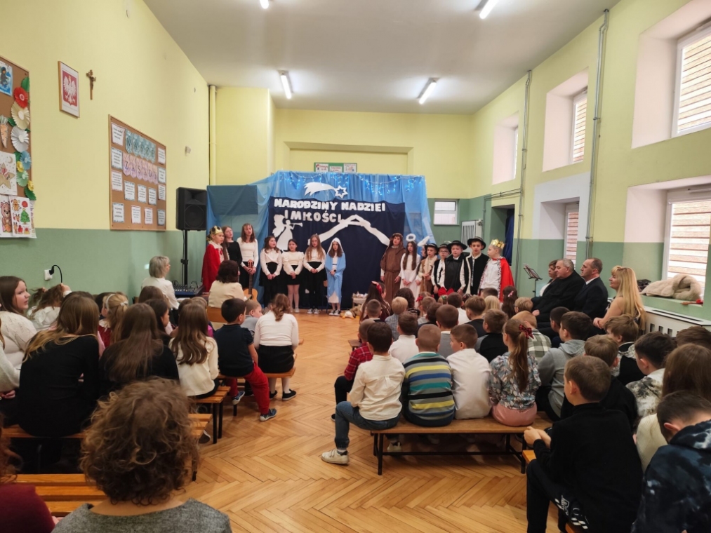 ,,NARODZINY NADZIEI I MIŁOŚCI" - pod tym hasłem odbyły się dzisiaj w naszej szkole Jasełka i spotkanie opłatkowe. Był to czas refleksji nad wciąż przychodzącą na świat Bożą Dzieciną, którą mamy rozpoznawać w drugim człowieku i przyjmować w Eucharystii. Przeżywaliśmy wspólny czas życzeń, modlitwy i radosnego kolędowania. Życzymy wszystkim błogosławionych Świąt Bożego Narodzenia!