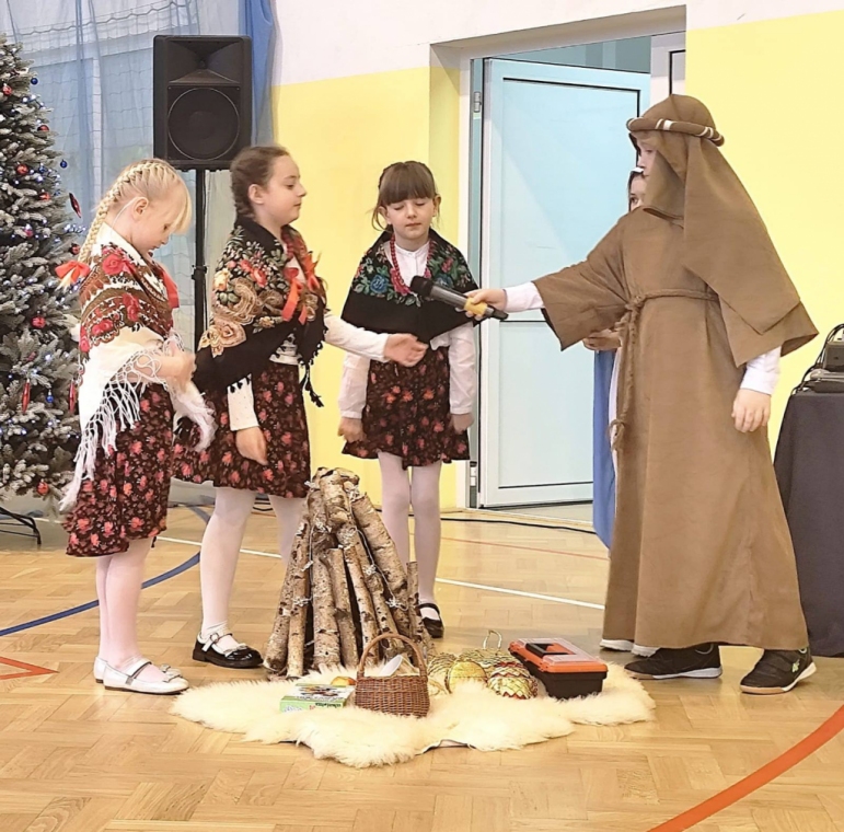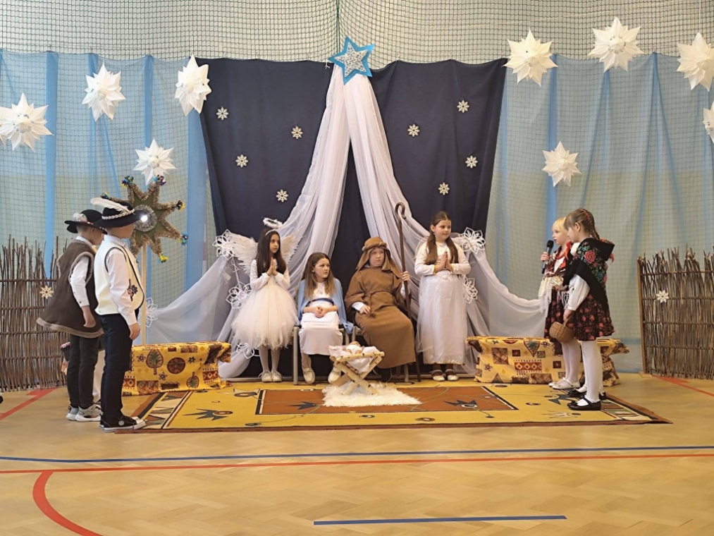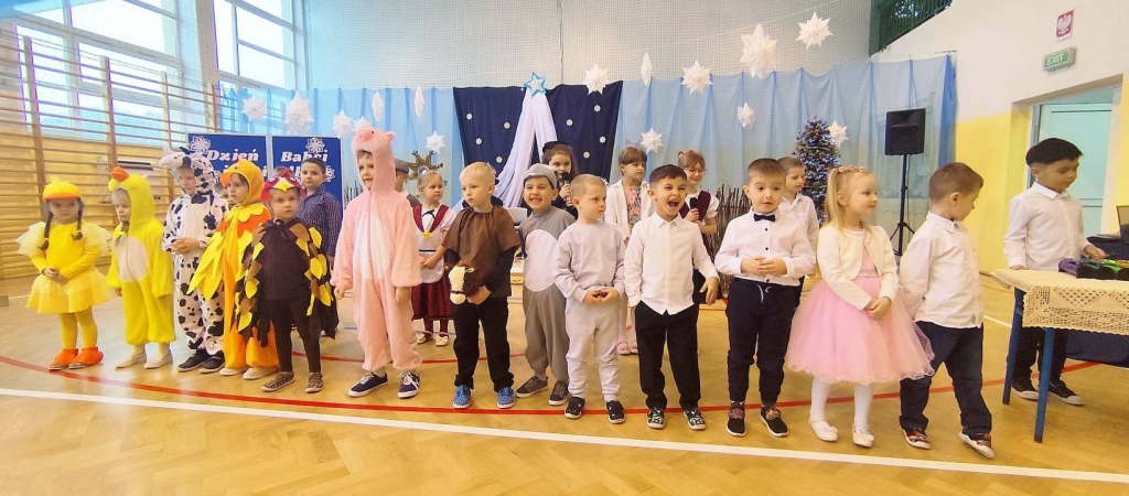 Przedszkolaki, przebrane za zwierzątka, zaprezentowały inscenizację pt. „Dzień na farmie z Babcią i Dziadkiem”, a uczniowie klas I–III przedstawili Jasełka wzbogacone muzyką ludową i tańcami. Występy dzieci zachwyciły zgromadzonych gości.